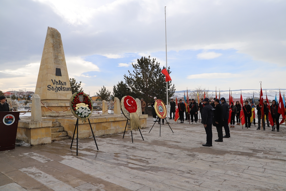 Programların ilki Şehitlikte başladı. Buradaki programda Valilik, Belediye Başkanlığı, Garnizon Komutanlığı ve Şehit Aileleri Derneği çelenklerinin şehitliğe bırakılmasının ardından saygı duruşunda bulunularak, istiklal marşı okundu ve şehitler için saygı atışı yapıldı. Günün anlam ve öneminin belirtildiği konuşmanın ardından Vali Hayrettin Çiçek, Garnizon Komutanı Tuğgeneral Mehmet Cihanoğlu ve Belediye Başkanımız Faruk Demir, şehitlik defterini imzaladı. Tören sonunda şehit mezarlarına karanfiller bırakılarak, dua edildi. Şehitlikteki törenin ardından Yanık Cami Anıtına geçilerek, 1915 yılında Ermeni çetelerince cami içerisinde şehit edilen 300 Osmanlı Türk’ü için dua edildi.