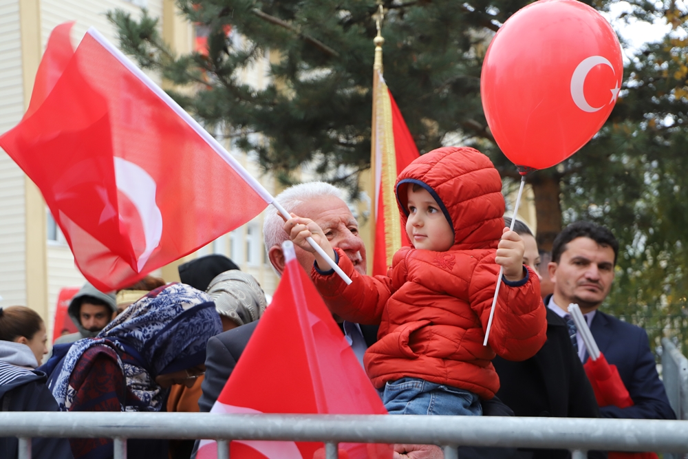 Soğuk havaya rağmen coşku içerisinde yapılan kutlamalar çerçevesinde öğrenciler şiirler okudu, askeri birlikler tören geçişinde bulundu.