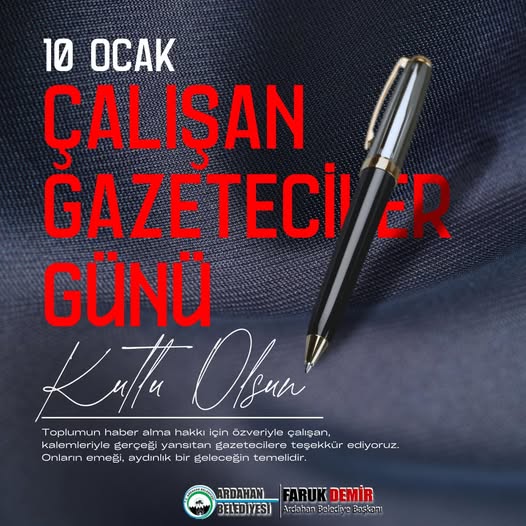 Ardahan Belediye Başkanımız Faruk Demir, 10 Ocak Çalışan Gazeteciler Günü dolayısıyla bir mesaj yayınladı.